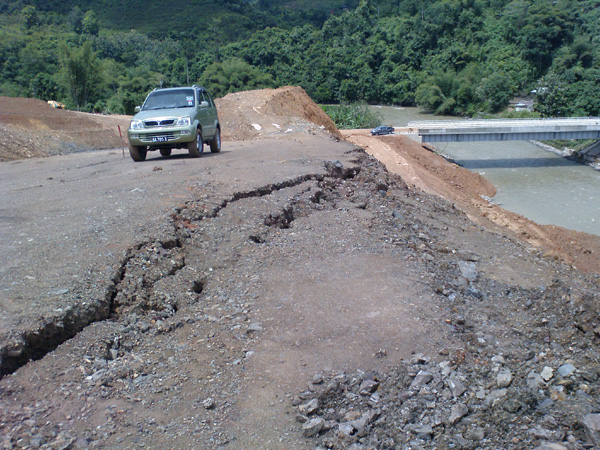 Proses peneresan dan pelebaran jalanraya dilihat dari jauh (seberang jambatan besi)